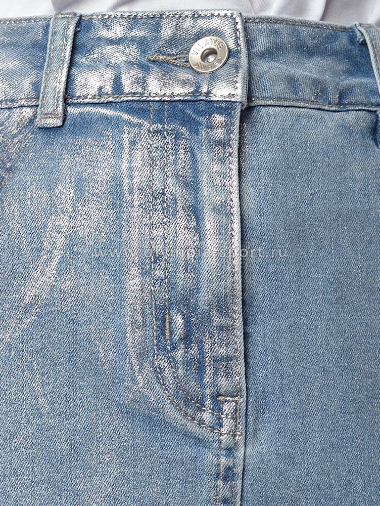 Юбка выполнена из эластичного денима. Сверху изделия нанесено стойкое, но при этом мягкое металлизированное покрытие с декоративными потёртостями. Модель прямого кроя чуть ниже колен с трендовым открытым срезом и пятью карманами как у джинс внесет яркий акцент любому образу.
