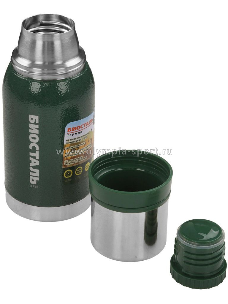 Термос Биосталь ОХОТА NBA-750G с узкой горлов., 2 чашки, 0,75л